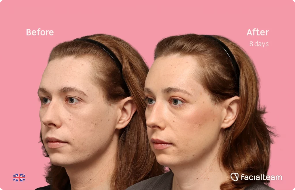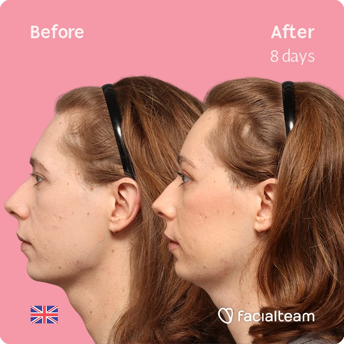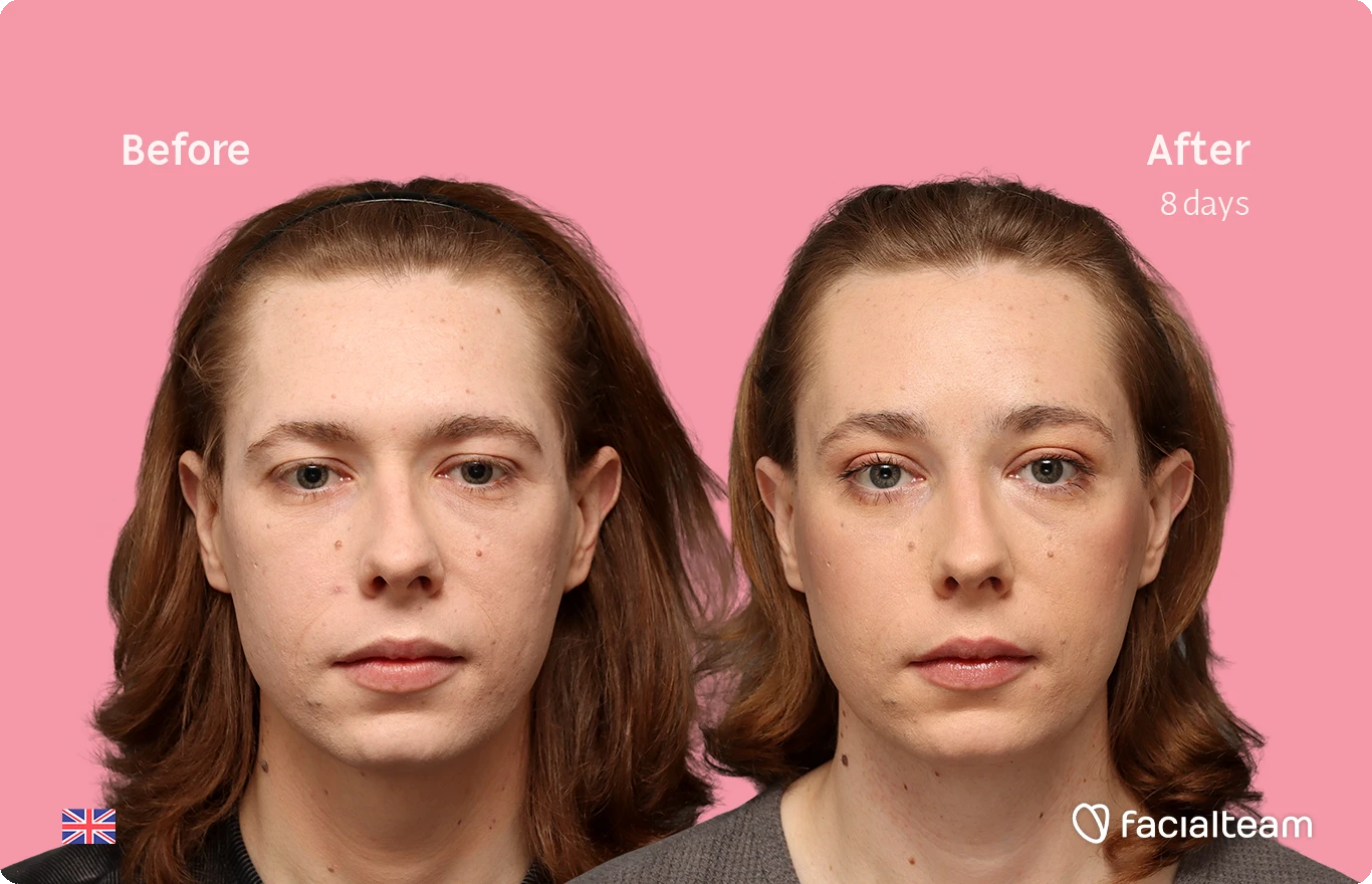 Chloe, mujer de 30 años del Reino Unido, se sometió a una cirugía de feminización de la frente en Facialteam, en Marbella. Las imágenes del antes y el después, tomadas tan solo ocho días después de la intervención, muestran la fase inicial de su transformación. Aunque aún presenta algo de inflamación, los primeros resultados ya revelan un contorno de la frente más suave y femenino. El caso de Chloe pone de manifiesto cómo incluso un único procedimiento específico puede generar cambios significativos en la armonía facial, favoreciendo una autoimagen más auténtica y segura desde el inicio del proceso de recuperación.